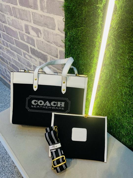 Coach Field Tote 30 Authenic Black Canvas With Pouch OG Box & Dust Bag 6739 Black
