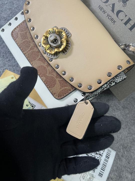 Coach Parker Studded Premium Shoulder Bag With OG Box & Dust Bag (Beige 28032)